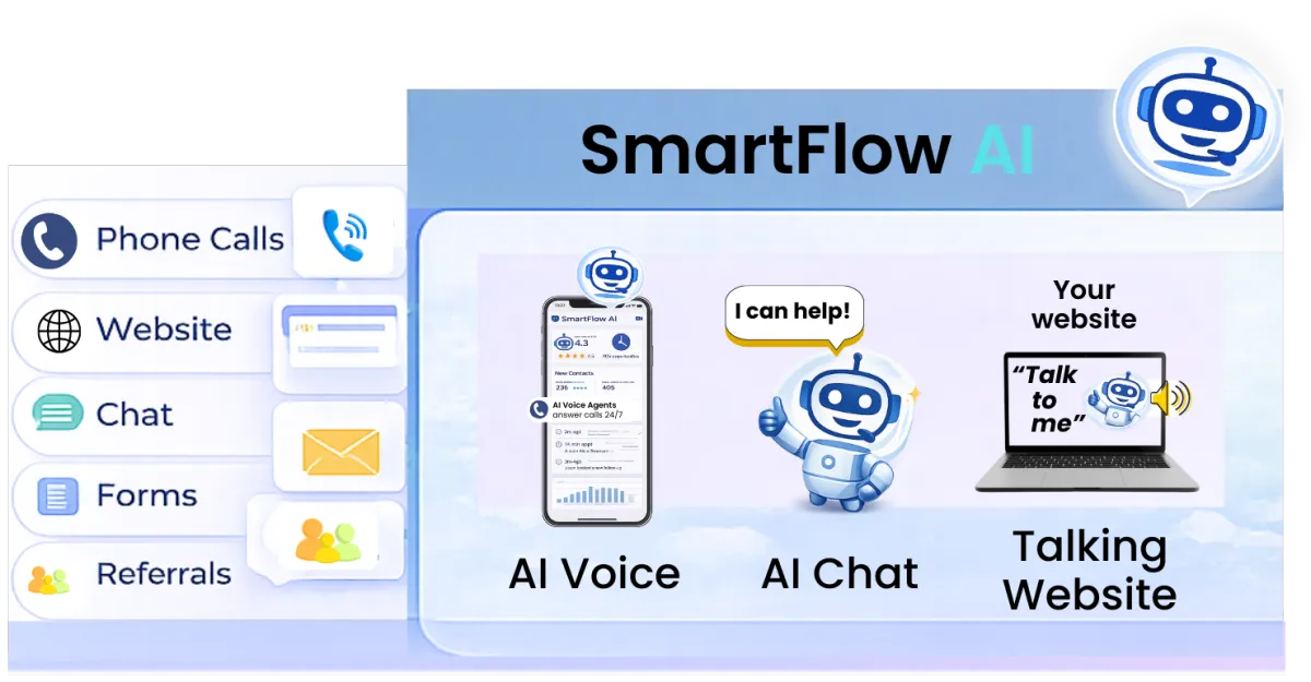SmartFlow AI answers calls, texts, and website chats instantly — qualifying and booking urgent jobs 24/7 while your team stays focused on the work.